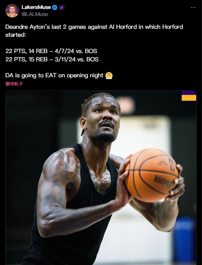“艾顿将在开赛夜得吃得喝”LakersMuse写道。